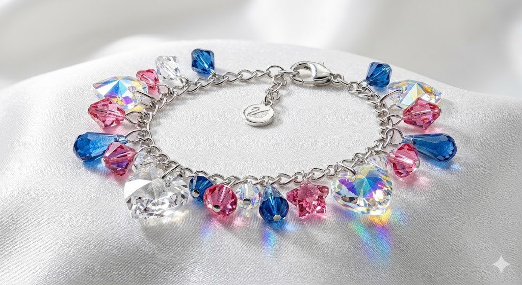 Swarovski offers several distinct charm and jewelry collections that appeal to different aesthetics and collecting focuses. The Remix Collection has become the flagship line for charm enthusiasts, featuring modular pieces that can be mixed and matched on bracelet chains. Remix pieces include single crystals, metal-accented designs, and decorative spacers in materials ranging from sterling silver plating to rose-gold plated bases, all enhanced with precisely cut Swarovski crystals.